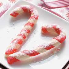 Heat oven to 375'. Mix shortening and butter, powdered sugar, egg and flavorings well. Add salt and then gradually add flour. Remove from mixing bowl and divide in half. Blend red food coloring into one of the halves, leaving the other 1/2 without coloring. Roll 4" strip of cough (1/2 to 1 tsp of dough) from each color. Using lightly floured board, place strips side by side. Press together at top and twist like a rope. For best results, complete 1 cookie at a time as they tend to dry out. Place on ungreased cookie sheet. Curve top for handle (like a real candy cane). Bake 9 minutes. While still warm, remove from pan and sprinkle with mixture of candy and sugar.